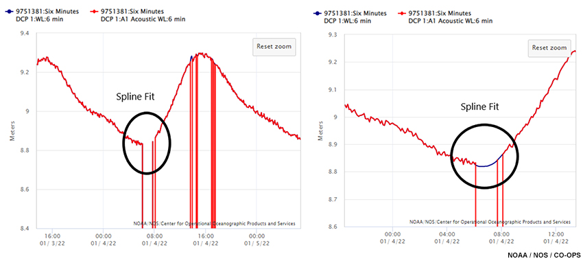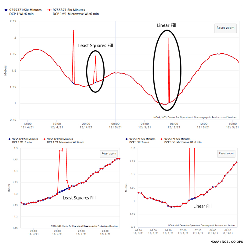 Review meteorological data such as wind speed, air pressure, and rainfall. Sudden or extreme changes in water level might actually be valid responses to weather events. - Compare it with Tidal Predictions